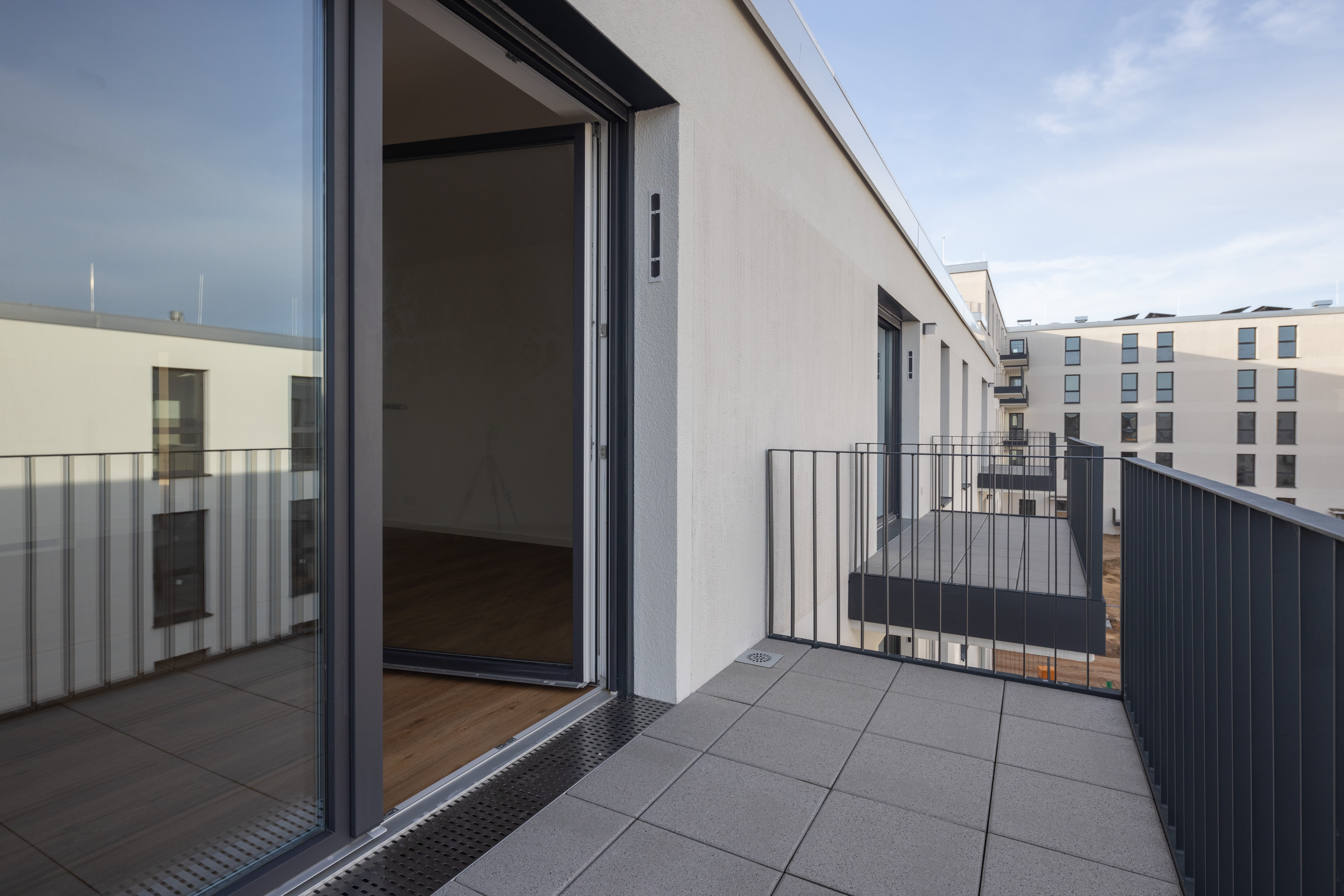 Um die Wohnungen vor Überhitzung zu schützen, wurde in alle Einheiten ein elektrischer Sonnenschutz integriert. Dieser sorgt für angenehme Raumtemperaturen.