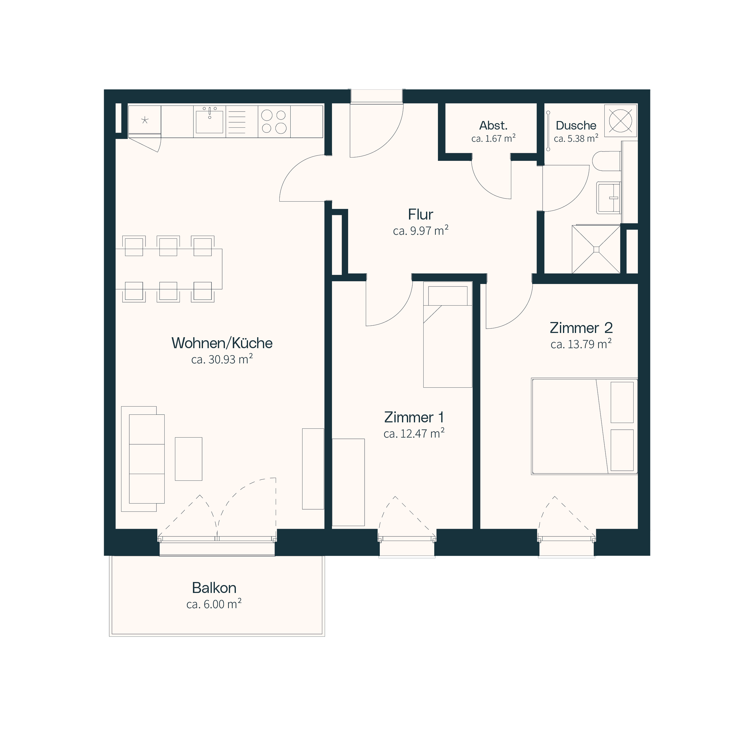 To protect the apartments from overheating, all units are equipped with electric sun protection. This ensures comfortable indoor temperatures.